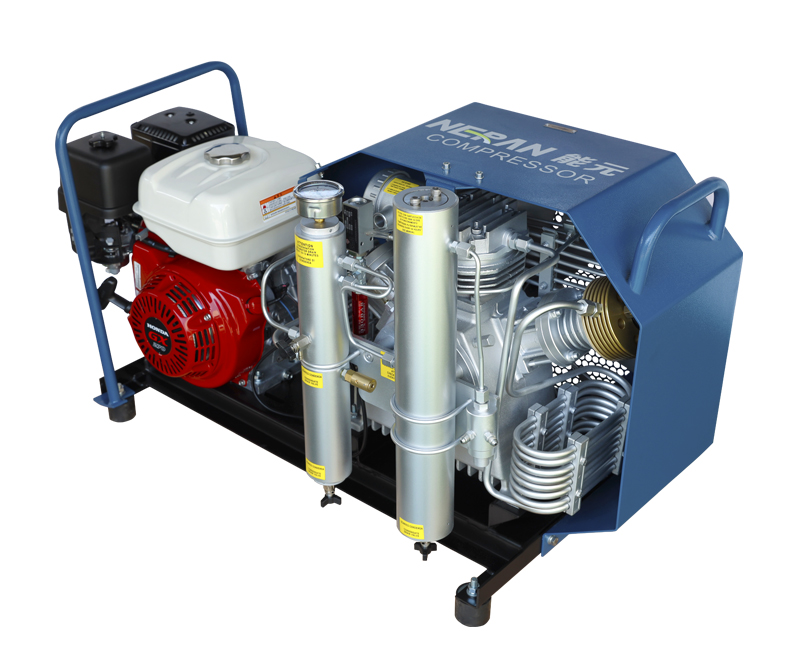 NRW200-GG/265-GG/300-GG系列空壓機,重量和體積相對較小,具有一定的可移動性和便攜性。標準配置中包含兩條充氣軟管和兩只充氣閥,可同時為兩個氣瓶充氣,提高效率。廣泛用于消防、潛水、化工、采礦、打撈救援等領域。可采用三相電機驅(qū)動、汽油機驅(qū)動,滿足不同應用場景的需求。